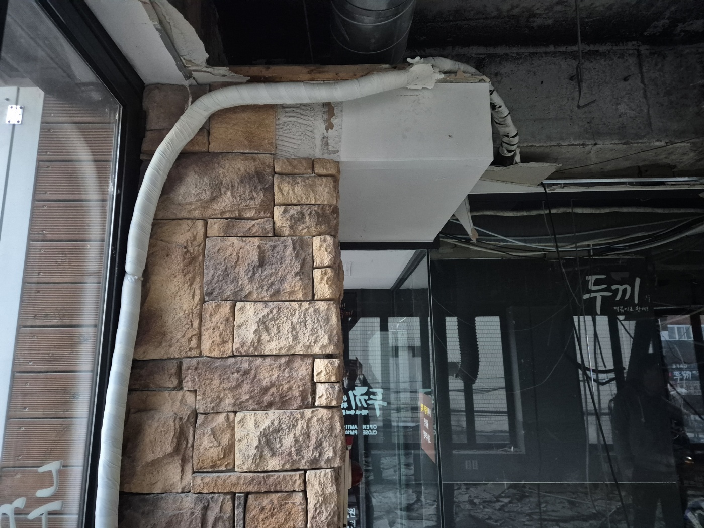창가쪽 천정이 해체되고 나니 에어컨 배관이